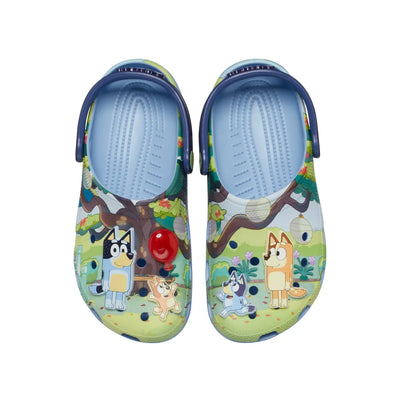 Bộ sưu tập Bluey x Crocs với phiên bản Bluey Classic Clog đã đến rồi đây. Bạn sẽ bị thu hút với họa tiết sân chơi của Bluey được in sắc nét toàn bộ phần upper, cùng với những phụ kiện Jibbitz™ Bluey và Bingo khi chúng cố gắng giữ quả bóng bay màu đỏ lơ lửng trên không trung. Tung hứng quả bóng bay cùng Bluey nào!
